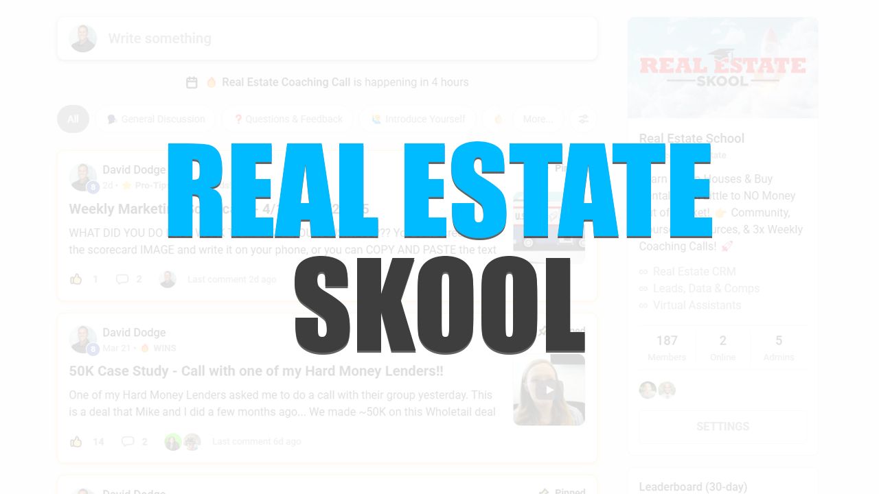 Real Estate Skool is our online real estate investing course platform where you can learn proven strategies for finding deals, closing contracts, and growing your real estate business.